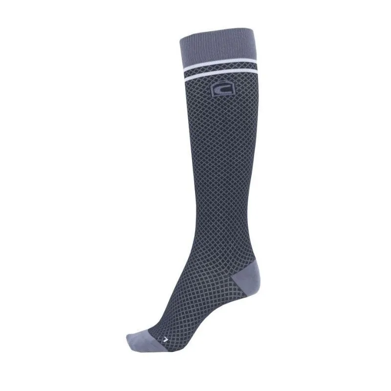 CAVALFINE LINE funktsionaalsed sokid – elegantsed naiste ratsasokid, mis ühendavad mugavuse ja stiili. Kogu soki ulatuses kulgev õrn peen teemantmuster loob peene kontrasti, mida täiendab vastandvärvi sääreosa kahe pehme triibuga. Kontrastsed kanna- ja varbaosad lisavad viimistletud ilme, R/L tähistus aga tagab ideaalse sobivuse.