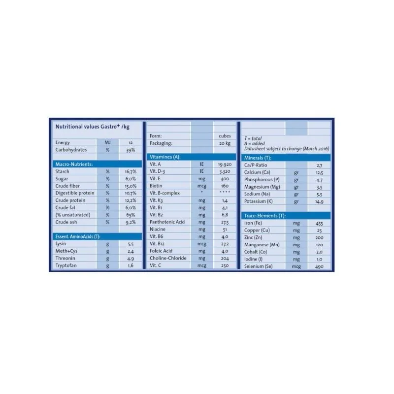 HAVENS Gastro+ on 7 mm täissöödakuubik, mis on spetsiaalselt välja töötatud toetama hobuse mao ja seedetrakti tervist ning vähendama mao happesust. See sobib eriti hästi sporthobustele, kes on vastuvõtlikud maohaavanditele või seedimisprobleemidele.