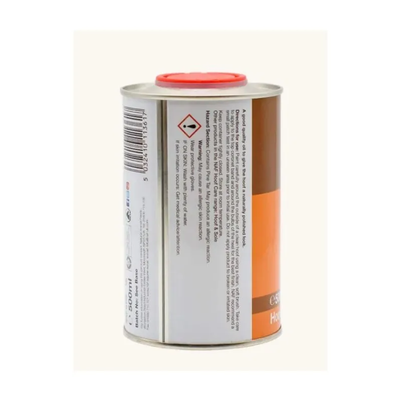 NAF Hoof Oil on kõrgekvaliteediline kabjaõli, mis annab kapjadele loomuliku, läikiva viimistluse, parandades nende välimust ja seisukorda.