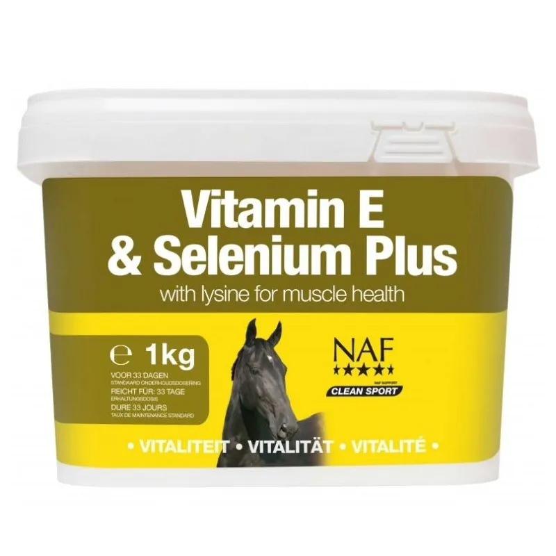 NAF Vitamin E & Selenium Plus on välja töötatud hobuste lihaste ja närvisüsteemi tervise ning üldise sooritusvõime toetamiseks. Toode sisaldab E-vitamiini, seleeni ja lüsiini — kolm olulist toitainet, mis koos aitavad tagada optimaalse lihasfunktsiooni ja ainevahetuse.