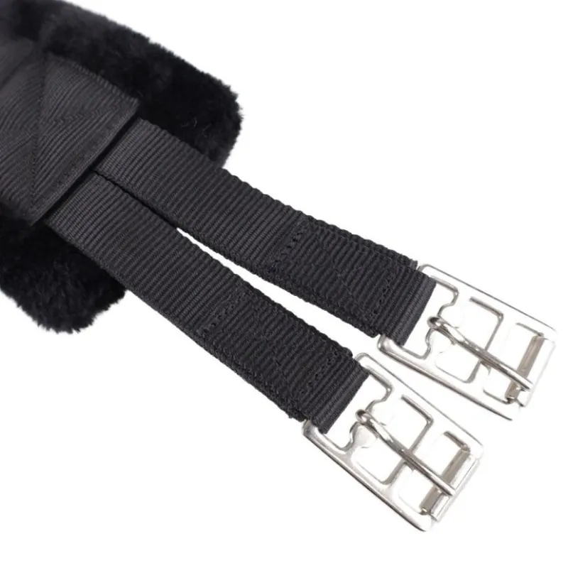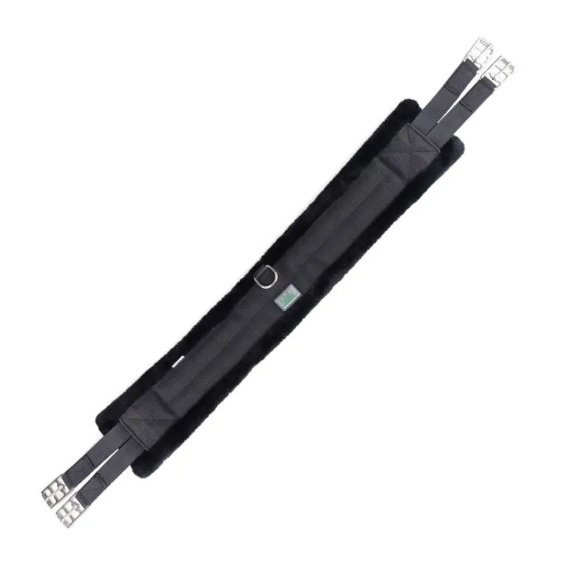 See pikk sadulavöö on varustatud kahe roostevabast terasest rullpandlaga mõlemal küljel, mis on kinnitatud tugevate rihmade külge – ilma elastikuosadeta, tagades kindla ja stabiilse sobivuse. Keskel asuv D-rõngas võimaldab vajadusel kinnitada erinevaid abivahendeid. Must kunstkarusnahk lisab nii mugavust kui ka stiili igale ratsavarustusele.