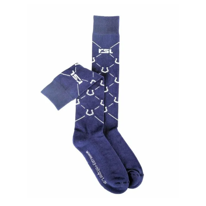 The USG "Lucky" riding socks are high-quality knee-high socks featuring a detailed horseshoe design, specially developed to meet the needs of riders. The high cotton content ensures exceptional comfort, while the reinforced footbed and elasticated cuff provide secure support inside the boot.
