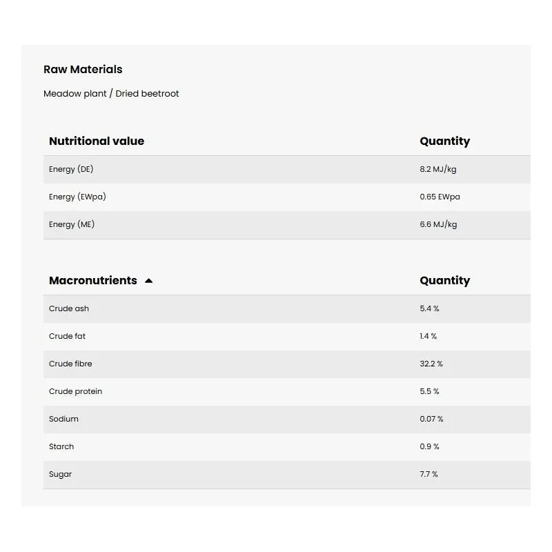 Horse (600 kg): max 180 g per day (approx. 40 treats)