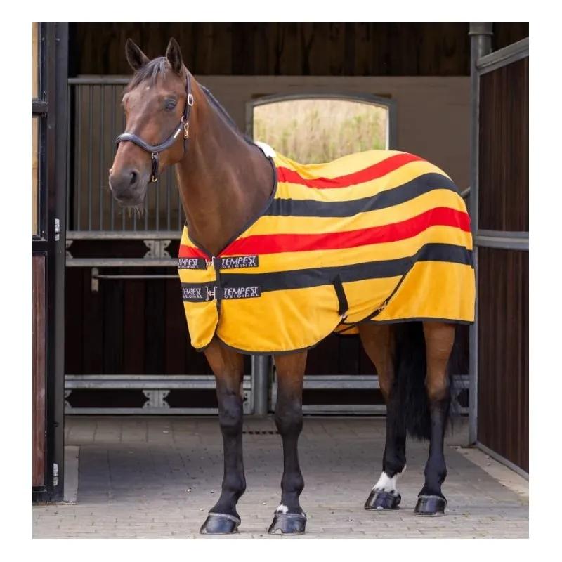 The Tempest Original Newmarket fleece rug features a timeless and traditional design while delivering show-smart style in an easy-care fleece material. Lightweight and breathable, the fleece traps air to help regulate body temperature and wick away excess moisture, creating a comfortable microclimate that prevents chilling. Perfect for travelling, post-exercise, or after bathing.